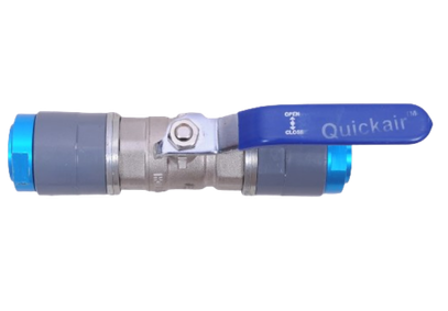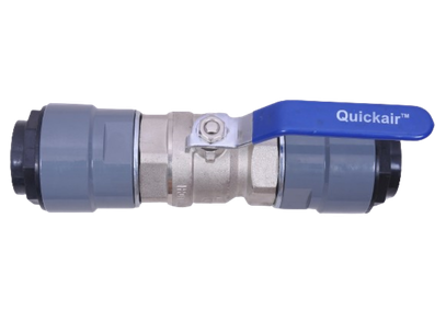 INLINE BALL VALVE WITH ANODISED PUSH FIT MALE CONNECTOR