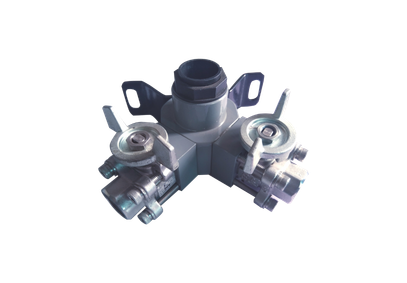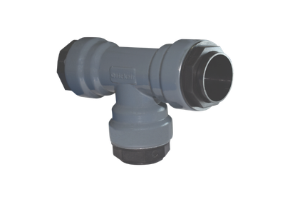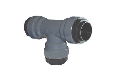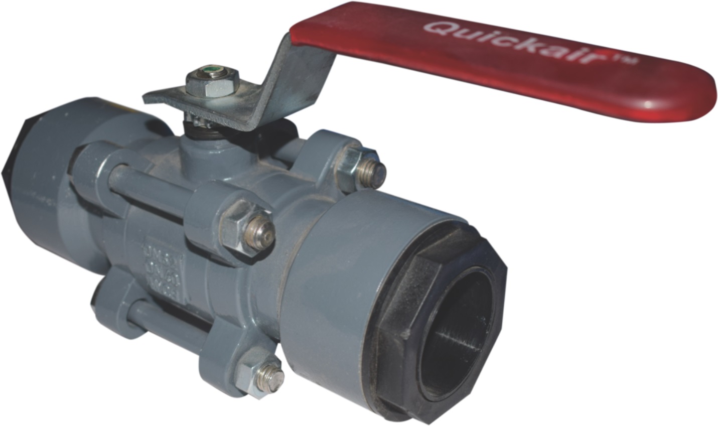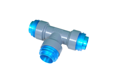 Aluminium body with aluminium caps & bushes, sizes 20 – 63 mm, 20 bar; quickest install for general shop air.